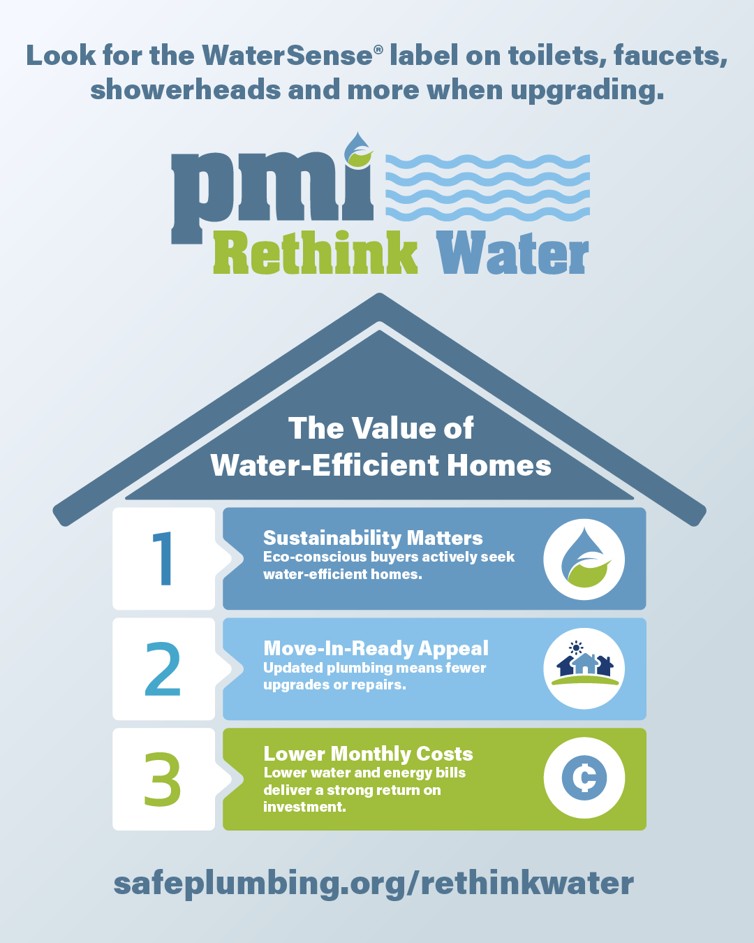 With a vision of safe, responsible plumbing – always, PMI advocates for plumbing product performance contributing to water efficiency and savings, sustainability, public health and safety, and consumer satisfaction through its Rethink Water initiative and other programs. PMI members manufacture water-efficient toilets, urinals, faucets, showerheads and other products at more than 70 locations across the country and market them online and in more than 26,000 home improvement stores, hardware stores and showrooms in all 50 states. For more information on PMI, contact the organization at 1750 Tysons Blvd., Ste. 1500, McLean, Va., 22102; tel.: 847-481-5500; fax: 847-481-5501. safeplumbing.org.